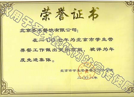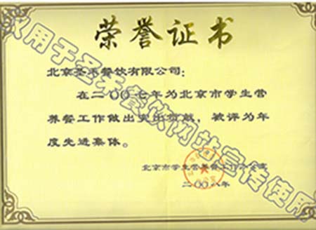 2007年北京市学生营养餐工作年度先进单位